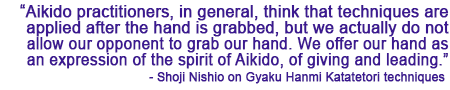 September 1, 2016 - class 121 with Roderick Johnson - 9 students. We started practice with an Katatetori Ikkyo stretching exercise and then learned Yokomenuchi Kotegaeshi, Hanmi Handachi Yokomenuchi Kotegaeshi, and Yokomenuchi Gokyo, all ai hanmi. Elizabeth was preparing for her 2nd kyu exam, so class ended with her demonstrating the techniques we learned today.