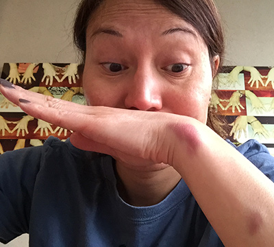 October 10, 2016 - class 132 with Roderick Johnson - 7 students. We practiced Ikkyo and Tsuki attack and defend exercises, Tsuki Nikkyo Omote, and Tsuki Kaitenage Ura. We watched Elizabeth practice her 2nd kyu exam techniques with Ken1 and Ken2. I was too tired to attend the second class. After my wrist healed from last week's practice, I ended up with a big bruise on it again from today's practice.