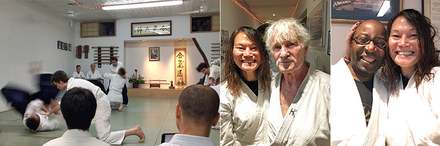May 13, 2017 - Founder's Day Seminar - Our annual Founder's Day Seminar is held every year to honor the memory of Henry Smith Shihan, founder of Aikikai of Philadelphia. Irv Faust Shihan, a good friend of Henry, visited our dojo to teach three classes to more than 20 students. We practiced Ryotetori Tenchinage Ura and a series of Ryotetori techniques of increasing difficulty including reverse Kotegaeshi and Kaitenage. We learned subtle concepts and techniques that you won't find in any book or video. Irv walked around, made corrections, and showed students how a particular technique should feel. Hidden beneath Irv's seemingly lanky frame is a man with over 40 years of martial arts knowledge in multiple disciplines. "Too strong... relax!" and "Work on being smooth!" were the two mantras of the day. "When you go to a seminar, try to take at least one thing out of your time there and work on it," Irv advised. My seven year old was very enthusiastic about meeting Irv. "I want a picture with the Samurai!" my son said. He meant Shihan. After the seminar, we had dinner at the Chinese restaurant downstairs where we enjoyed a sumptuous feast that included eight different dishes, including meats, vegetables, and fruit.