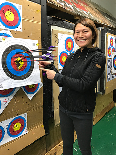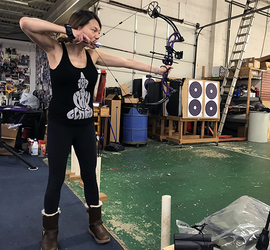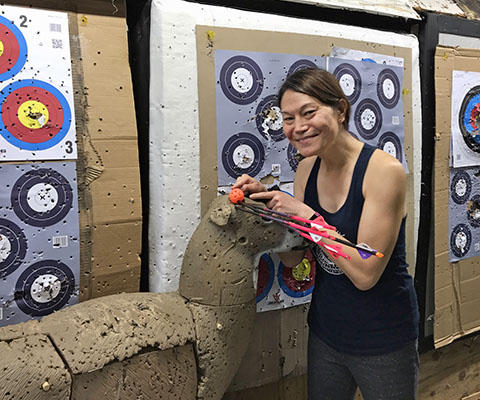 April 3, 2018 - Day 3. In my third practice day, I found myself consistently shooting a little high and to the right, so Herb adjusted my sight. I was still shooting high after that, but he said to not worry about that. "By the time the arrow reaches the back wall, it'll drop right onto the bullseye," he said. Lots of target practice today at 10 and 15 yards. Herb said I should try 20 yards next aiming at a vertical line. He’ll also add more draw weight to my bow. My shoulders were sore the next day.