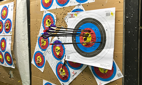 March 30, 2018 - Day 2. I took my kids to B&A Archery and they had a great time there. My youngest son was shooting arrows like a champ and my oldest son became interested in crossbows as a result of their visit. Bill gave me several tips during my target practices, including using my bevel to improve accuracy and making sure my fingers are out of the arrow's path so the vanes don't cut me. I split a nock by hitting it with another arrow.