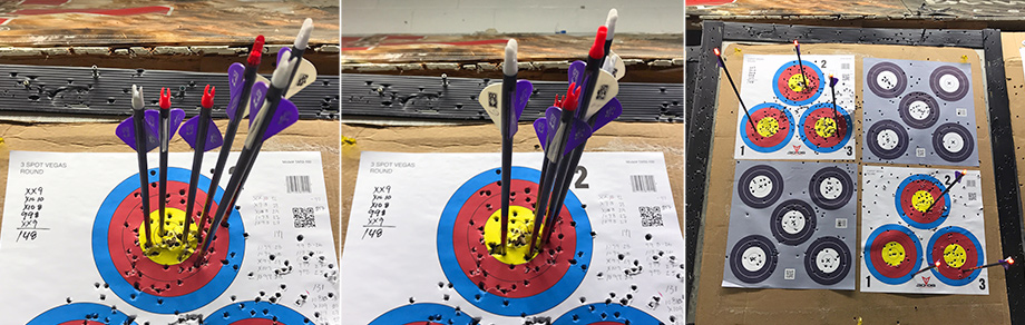 February 16, 2019 - Day 14. I took my oldest son to the range with me, but he wasn't that into it. I decided to take a chance with my new nocks and concentrate on one target. I like the fact that I don't need to use my binoculars to see my shots. Bill liked my form today. He suggested I come on Tuesdays when there are sometimes 30 to 40 archers in house shooting from both upstairs (30 yards) and downstairs (20 yards). Two archers thought I shot very well. The first asked me if I had ever considered hunting. The second complimented me on my grouping in my last set (third picture below). I felt that I should just stop while I was ahead and end the day on a high note. I think I do pretty well for someone who doesn't see 20/20.
