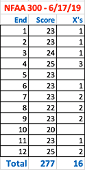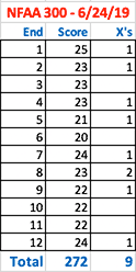 June 24, 2019 - Day 39 - The humidity and distractions got to me and affected my score. I scored 272/300 and 9 X rings. Most of my shots were low. Perhaps I'll do better next time.