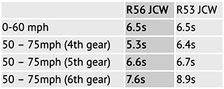 For reference, here are the official numbers. Keep in mind BMW is notoriously conservative with their figures. Auto mags routinely get at least half a second better times in most tests (previous MINI and JCW tests have born this out).