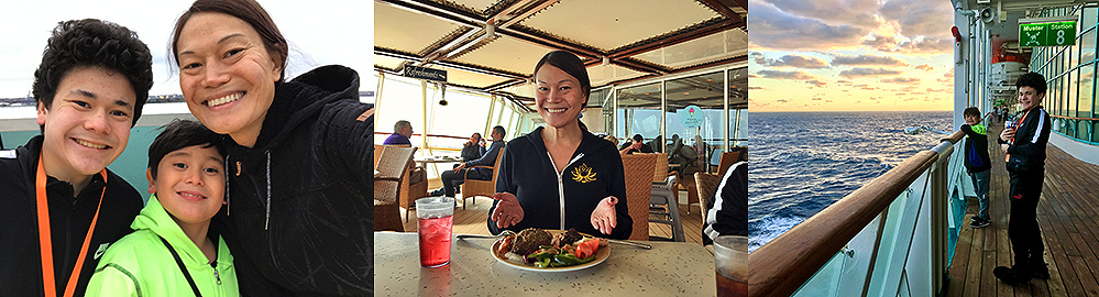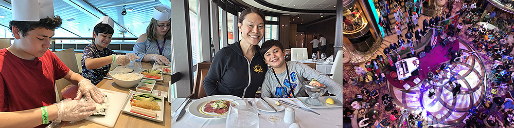 I enrolled my sons in a sushi making class on the next to last sea day. They thoroughly enjoyed the experience of crafting their own sushi rolls and shrimp nigiri. We ate at Chop's Grill, the onboard high-end steakhouse, on the last remaining sea day. We enjoyed some wonderful colossal shrimp, charred beef carpaccio, iceberg wedge salad, mushroom soup, filet mignon, and decadent desserts. There were three specialty restaurants, including Chop's Grill, Giovanni's Italian, and Izumi Japanese. The food that was a standard part of the cruise experience in the cafeteria and dining room was outstanding. We ate like royalty every day and met some new friends. They were Indian and the wonderful thing was part of the kitchen staff was, too, so every day we were treated to a special Indian dish made just for us. On the final evening, the crew provided us with several celebrations, including music, dancing, and a cake-cutting ceremony.