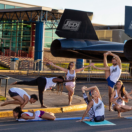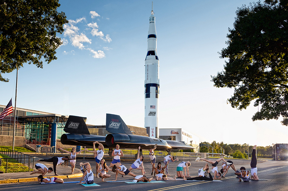 Tuesday, September 29, 2020 - Day 6 - We started our day with a two-hour Ashtanga class from 8am to 10am led by Giselle. I floated for a few seconds in an unassisted headstand during our headstand practice. Instead of fearing the headstand, I just said to myself, "What the hell, let's just do it." Ashtanga is hard as hell because of all the crazy twists and lifts. Some of my fellow JFC trainees were floating for 30 seconds! "Lunch" was a green smoothie. At 11:30pm to 3pm, we practiced two homework sessions with a mini-photo opportunity in between. I touched the fingertips of both of my hands on the ground during wall-walking! Several people were tracking my progress silently over the last week and congratulated me for reaching the bottom. Esak asked us if we had any questions so far during training. "Have you always been this hardcore?" I asked. "I feel I was more hardcore when I was younger and got softer with age," he replied. We had an early dinner, two bean tacos and a salad. Three of the seven days had stormy weather, so this was a nice, sunny day to sit poolside while eating lunch. We took a trip to the U.S. Space & Rocket Center for another photo opportunity and posed in our JFC tanktops in front of the SR-71 Blackbird. My posture was Phoenix. We had to pose again and again for the pictures until the entire group looked perfect. I don't know why we didn't just do the pictures in sections and have the photographer stitch the pieces together. I suppose this could be seen as another endurance challenge. A number of us went to Whole Foods for more supplemental food. At 7:30pm to 9:30pm, Breanna led an Intermediate Series class. I wanted to skip it, but my inner voice kept telling me, "You paid to be here, so you're going to do it." My knees were feeling weak during class, so I did Fixed Firm with straight legs and replaced Wheel with Bridge. Bree is a fine example of a competition-level yogi who isn't super-skinny and emaciated. She's really quite beautiful. I was hella tired by the time we got to Full Locust. We did two sets of that where the second set was one in which a partner held onto our ankles. Seeing that I did not have a partner, Ayo darted from the back of the room to the front to hold my ankles down. I surprised myself, and perhaps others, when I lifted myself high up in the air like a phoenix. The juice of the day was watermelon. I met with Jasmine, the Canadian yoga champion, later that night so she could review my routine for the upcoming IYSF virtual competition. Like me, she is self-trained and self-coached. Jasmine liked the beauty and stillness I exhibited in my routine. She offered to help me record another take of my video if I wanted. Jasmine is one of JFC's senior teachers and leads many of the global JFC trainings. When you watch her do a balancing posture, you cannot help but be amazed that you are looking at one of the most beautiful people in the world. I walked by the yoga studio and saw Tara, a fellow JFC trainee and one of my Facebook Live yoga students, preparing her routine for the IYSF virtual competition. She's been hard at work at it for the past few days. Our Ashtanga teacher, Giselle, was coaching her. Giselle's coach is the world-renowned Kim Tang.