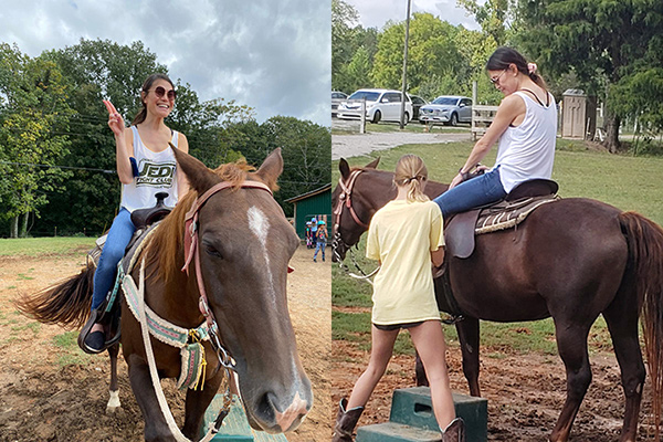 Saturday, September 26, 2020 - Day 3 - Our day started with a two-hour Ashtanga class from 8am to 10am led by Giselle. At 10:45am, we did Jedi homework - drills with wall-walking, handstands, spine twists, supine splits, wheels with push-ups - until 12:15pm. Esak liked my progress in my wall-walks. "Lunch" was a banana-mango-green powder smoothie and two Suja Uber Greens juices. From 1pm to 4:30pm, we did an unannounced activity, horseback riding at Starr HB Farms. I had never ridden a horse before, so this was a unique experience for me. We were encouraged to wear our JFC tanktops in the yoga studio for a photo opportunity. A group of us went to Whole Foods for a quick in-between meal. David, a businessman with a bodybuilder's physique, drove us that day and I learned that he had attended several JFC trainings in the past and was mentioned in one of my favorite yoga autobiographies, Benjamin Lorr's Hell-Bent. I showed Barbara, a former master sergeant in the Marine Corps, my Northeast Regional Championship video and she was impressed. "This is for all the fifty year olds out there. I may not be as flexible as the twenty-somethings in this training, but this is what they have to look forward to," I said, pointing at my video. At 5pm, Esak led a three-hour e84 class and inspired us with his ability to demonstrate the more difficult postures. Our horseback riding excursion really opened up our hips and, while it may seem fun, following it with a three-hour yoga class is especially challenging. With our knees trembling and, in some cases, buckling, everyone managed to bend and twist to the best of their abilities. I could tell people were getting tired. Some paused or sat out a posture. I usually practiced at the front of the room, but this time I moved to the middle row. During the handstand portion of the floor series, Barbara and I were exhausted, so we just lay flat on our backs. "Don't worry, we'll get through this together," I said, holding her hand. At 8pm, we had dinner with an artichoke and corn salad and curried chickpea stew with bulgar wheat. At 9pm, we had a 90-minute discussion on yoga philosophy that was broadcasted to the Jedi Lounge, an online discussion group for JFC members. At one point, Esak's attention turned to me, perhaps because he caught me visibly falling asleep. He asked me for my opinion on the meaning of yoga. I described my philosophy on not just yoga, but on how I believe God is actually in all of us and that every posture we do, we strive for perfection and that perfection gives us another energetic strand that connects our inner self with the greater Self. Once we connect enough strands, we are one with the universe.